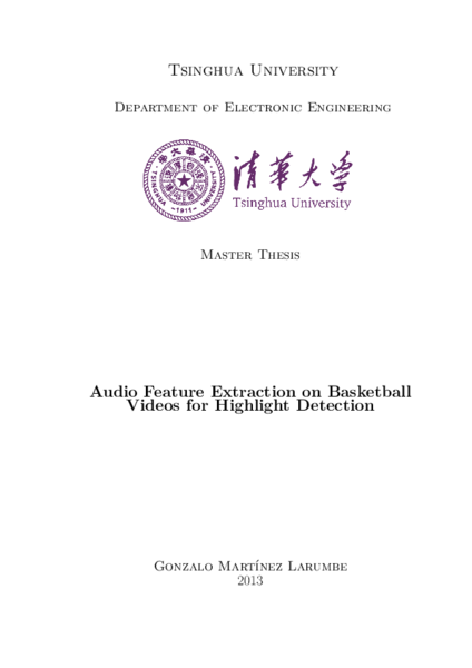 The title of the work, Audio Feature Extraction on Basketball Videos for Highlight Detection, shows a direct application of the Telecommunications Engineering degree field of knowledge in the context of emerging technologies: